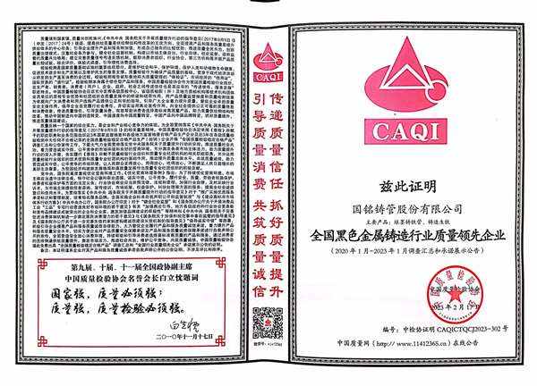 在半個多世紀(jì)的崢嶸歲月中,國銘鑄管依托雄厚實力和專業(yè)技術(shù)品質(zhì),堅持“技術(shù)提升質(zhì)量,品質(zhì)鑄就品牌,創(chuàng)新推動發(fā)展”的企業(yè)宗旨,為客戶提供滿意的產(chǎn)品和服務(wù)