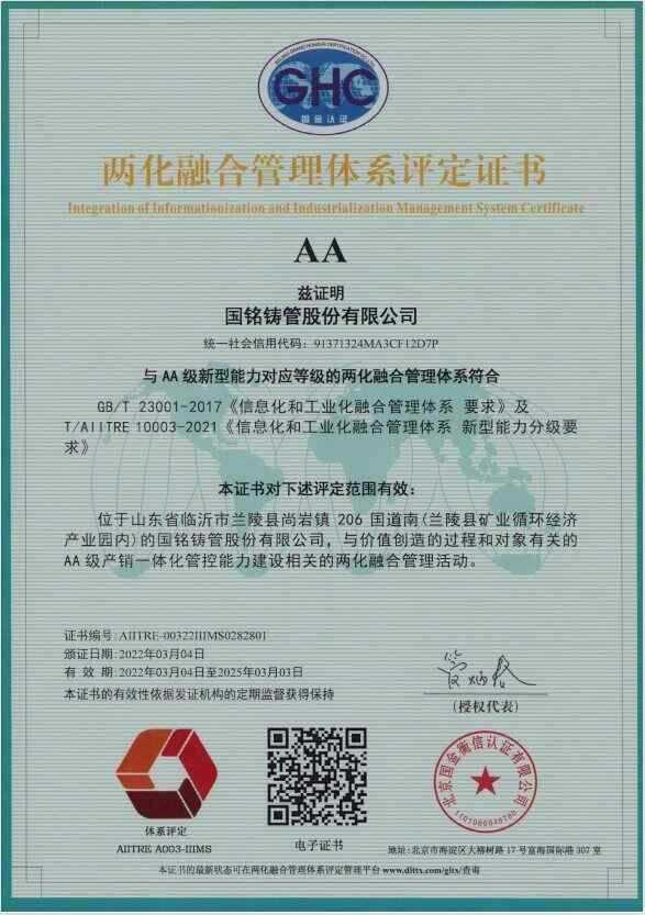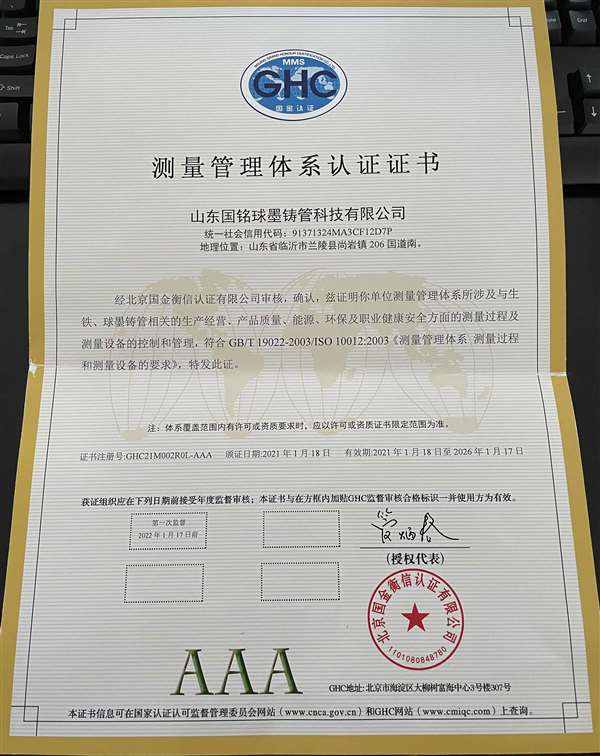 國銘鑄管股份有限公司是專注鑄管、鑄件領(lǐng)域研發(fā)、煉鐵、鑄造、銷售于一體的全產(chǎn)業(yè)鏈企業(yè),主營煉鐵和多品種離心球墨鑄鐵管,同時具有鑄造管件、鑄件、化工等輔助產(chǎn)品